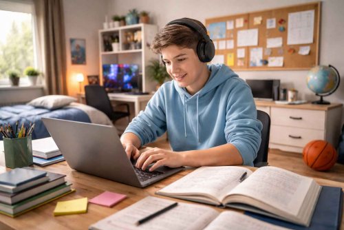Онлайн-обучение выглядит удобно, пока не начинаешь считать часы за столом. Их много. Иногда слишком. Особенно если выбран гибкий формат занятий, где ребенок может совмещать расписание, повторять записи уроков и работать в своем темпе. Ребенок не просто делает уроки – он живет в этом ритме: занятия, домашка, повторение записей. И вот тут комната перестает быть просто комнатой. Она становится чем-то вроде учебного центра, только домашнего. И если не продумать детали, усталость и раздражение появляются быстро.