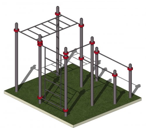 Комплекс сочетает сразу несколько направлений нагрузки. Тут есть и силовые упражнения, и координация, и работа с собственным весом. Причём всё это собрано в одной конструкции. Не нужно переходить с одного тренажёра на другой, искать свободное место.