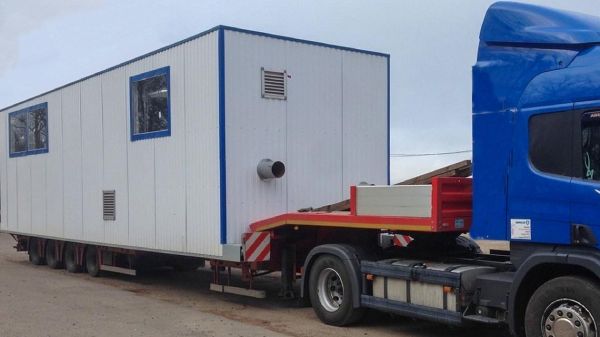 2. Для перевозки вагон-домов используются автомобили с прицепами или тракторы в сочетании со специализированными платформами. Если рассматривать вариант вагон-дома на шасси, то этот подход существенно упрощает задачи транспортировки, поскольку модуль перемещается как полноценный прицеп, и его можно легко перемещать по площадке грузовым автомобилем.